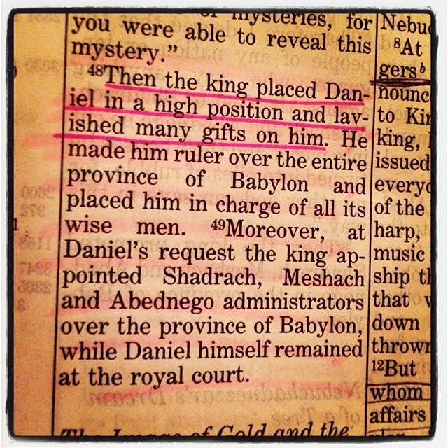 If God promoted someone & the king they had the honor to serve lavished upon them a brand new car, big castle like house & other luxuries… The average church would accuse and ridicule and rebuke said person and call them greedy or say they had an ulterior motive. While all the while the king is showing gratitude to the servant of The Lord; he is showing kindness & has a deep respect for Daniel.
