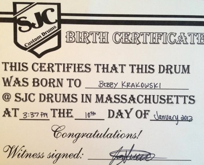 This was the FUNNEST thing I saw happen…. when Bobby's drum arrived it came with a BIRTH CERTIFICATE!! That is amazing!